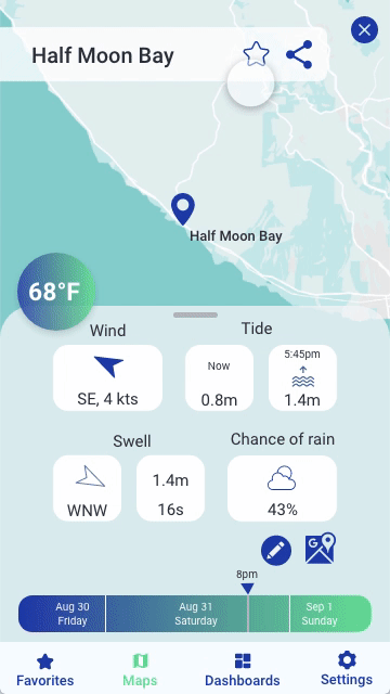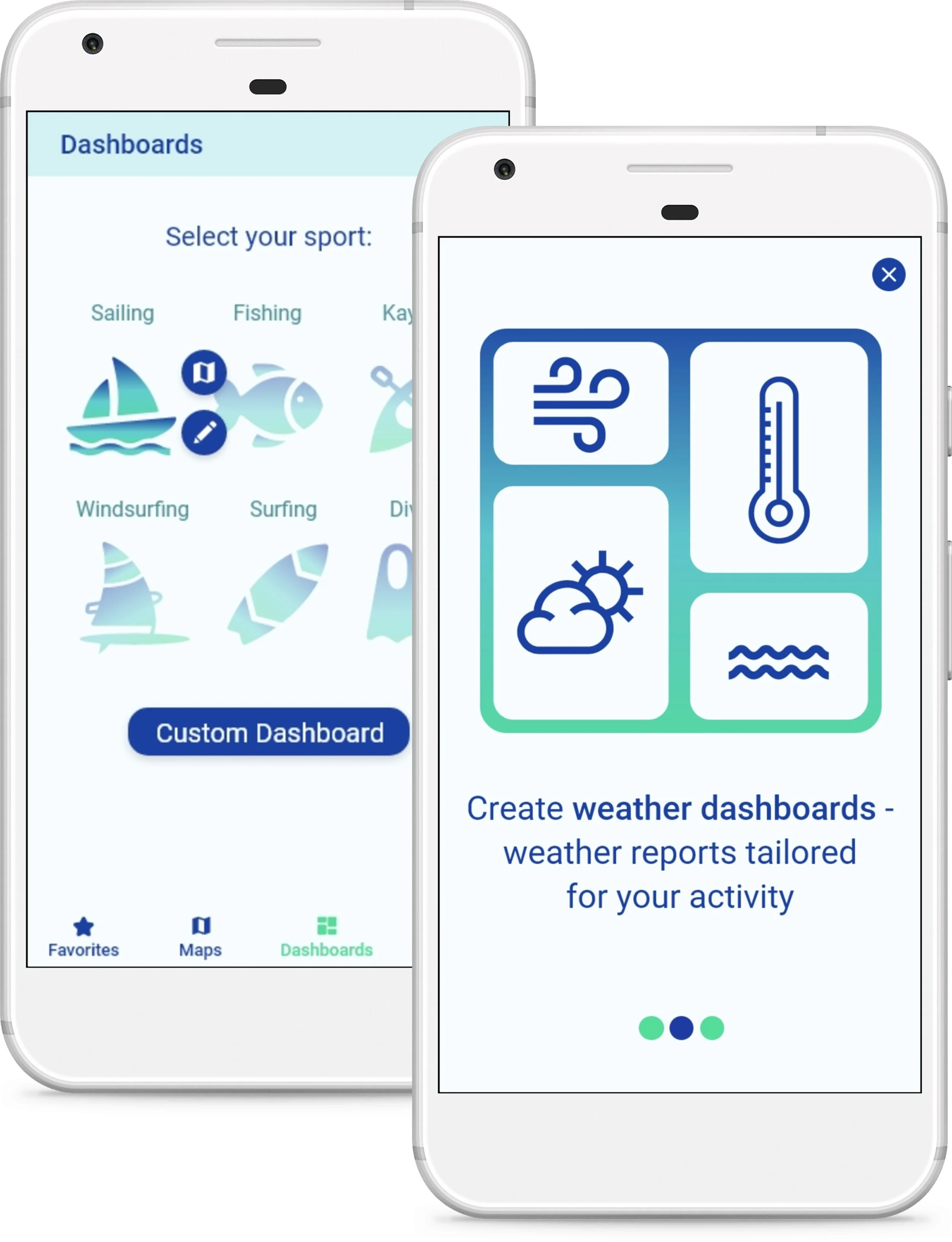 A coastal weather tracker, which allows users to create customized weather reports tailored to their favorite open water sport.